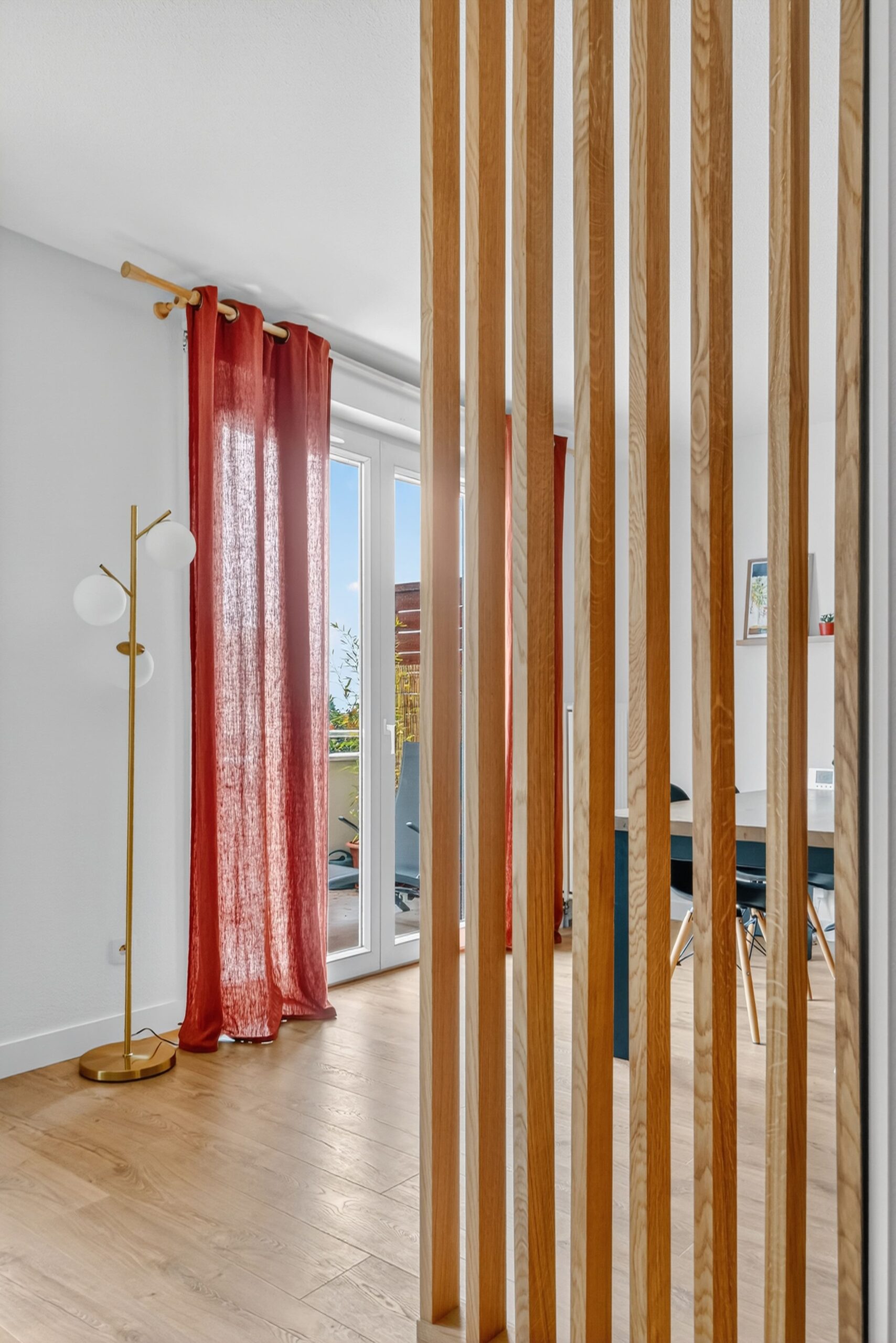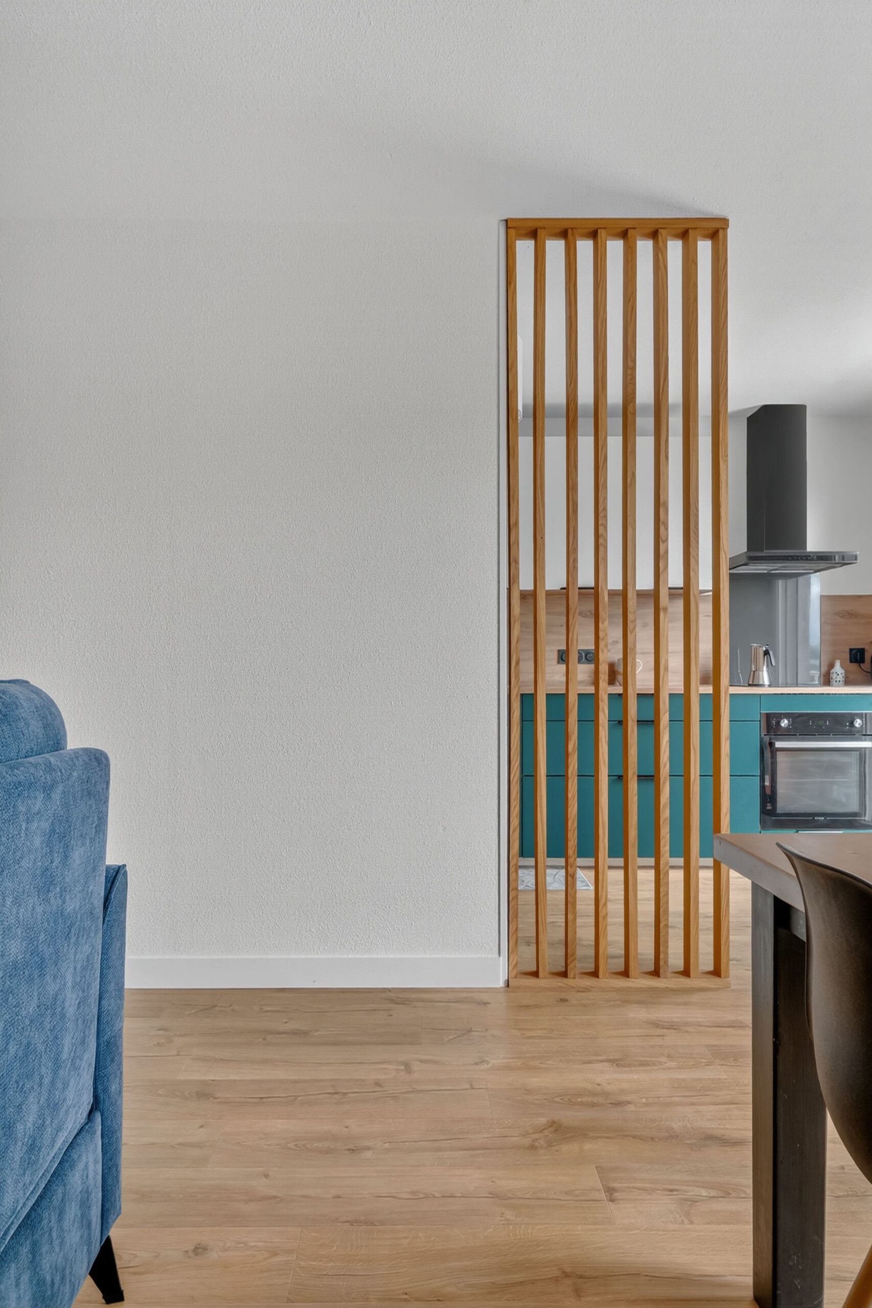 Ils envisageaient de changer le sol et de repeindre les murs, mais hésitaient sur la manière de s’y prendre et craignaient de faire de mauvais choix. Après plusieurs recherches d’inspirations, ils avaient besoin d’une vision claire et adaptée à leur intérieur. Leur souhait était également d’installer un claustra entre la cuisine et la salle à manger, pour créer une séparation légère sans cloisonner.
