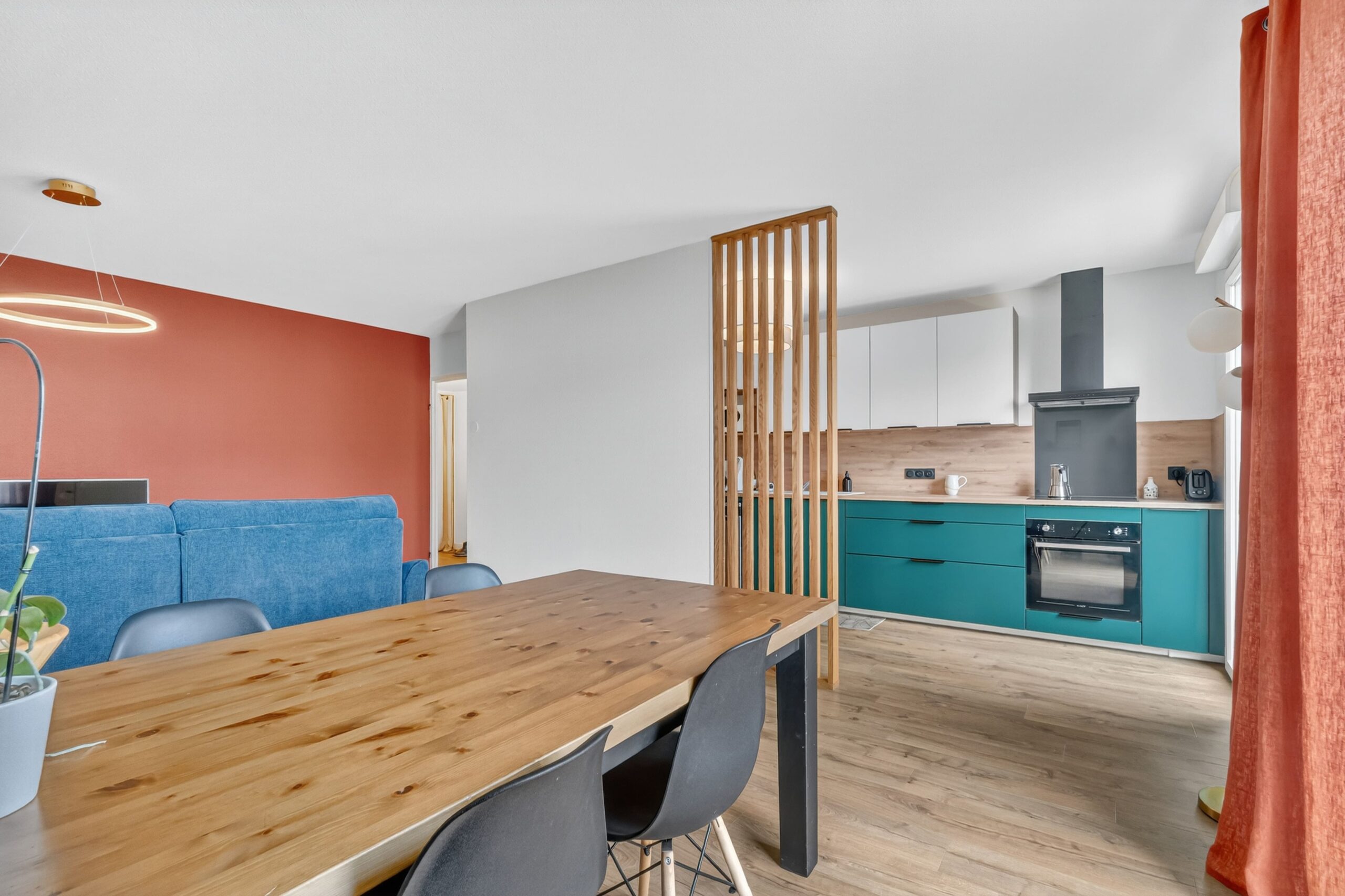 Ensemble, nous avons travaillé sur chaque détail de ce projet. Résultat : une pièce de vie chaleureuse, colorée et authentique, qui reflète leur personnalité, respecte leurs valeurs et leur offre un cadre de vie sain au quotidien.